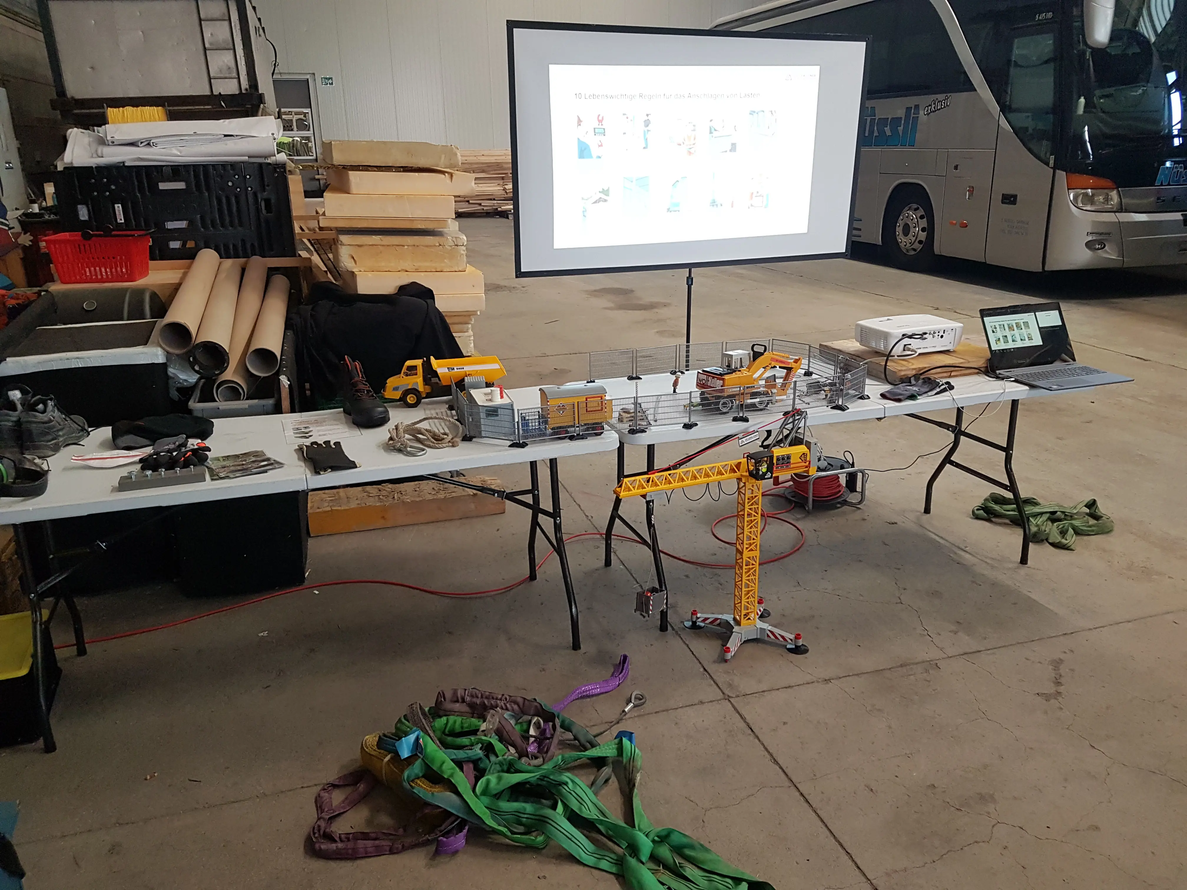 - Anschlagen und Heben von Lasten in einem SUVA-anerkannten Kurs für Chauffeure und Mitarbeitende des Recyclingcenters.