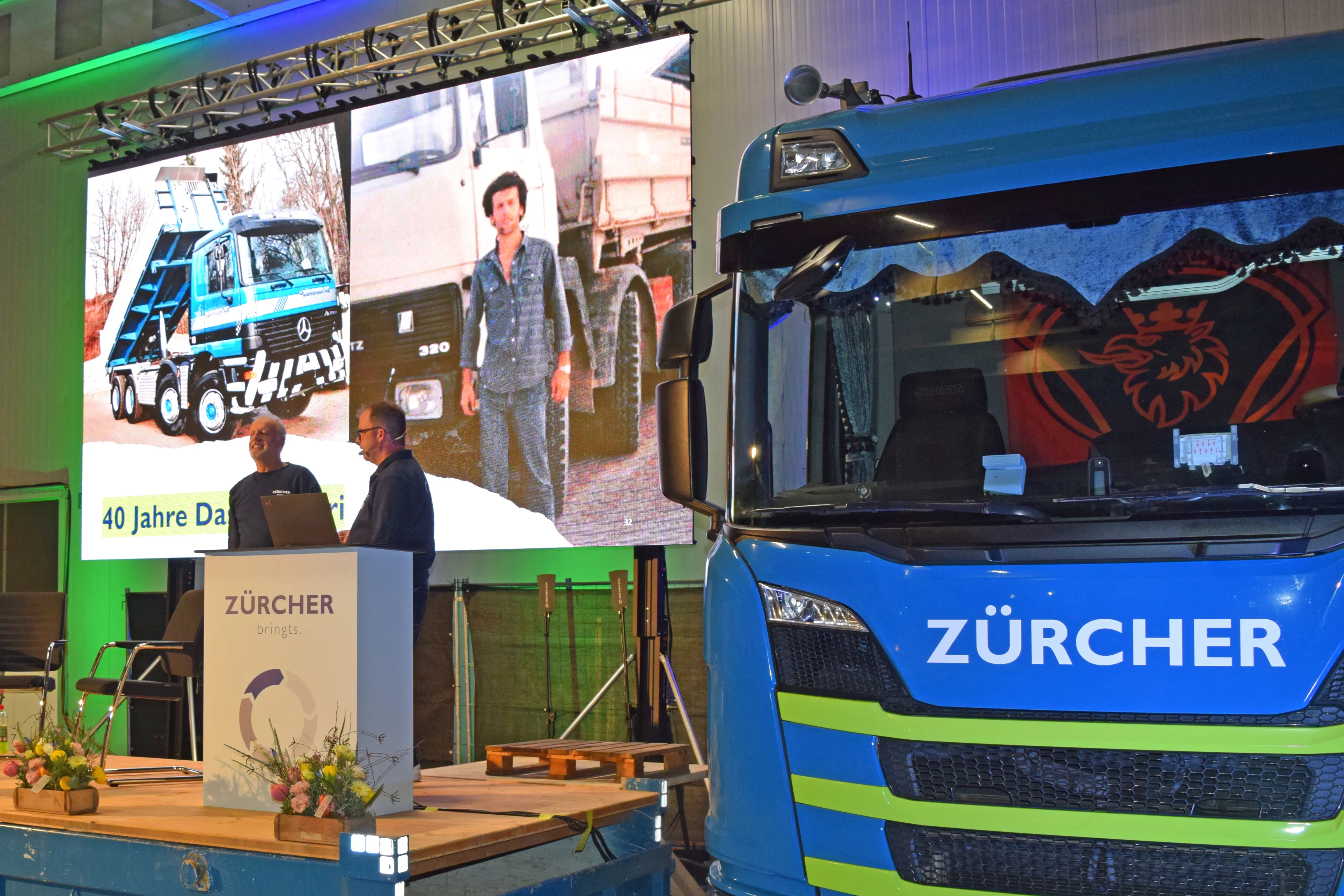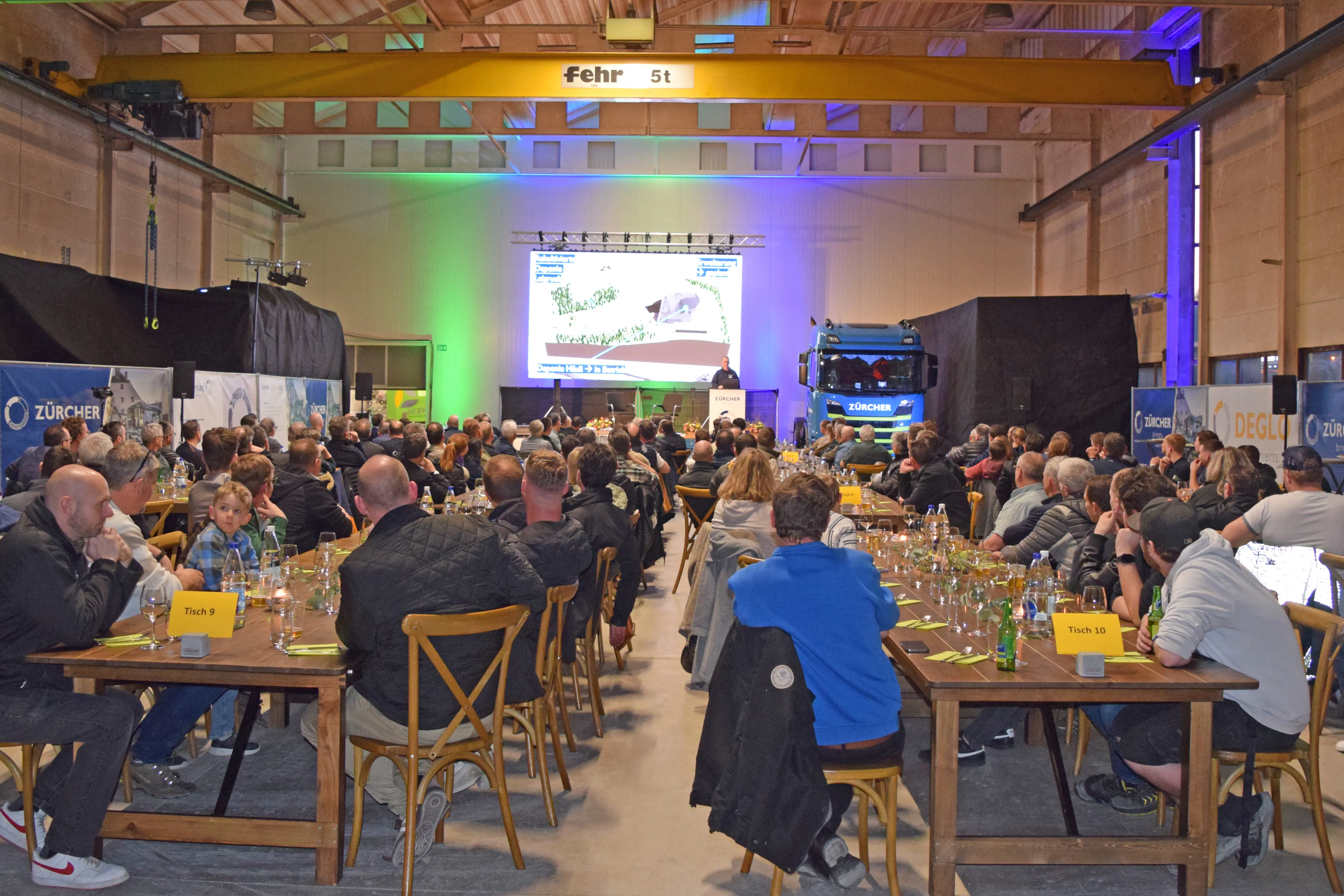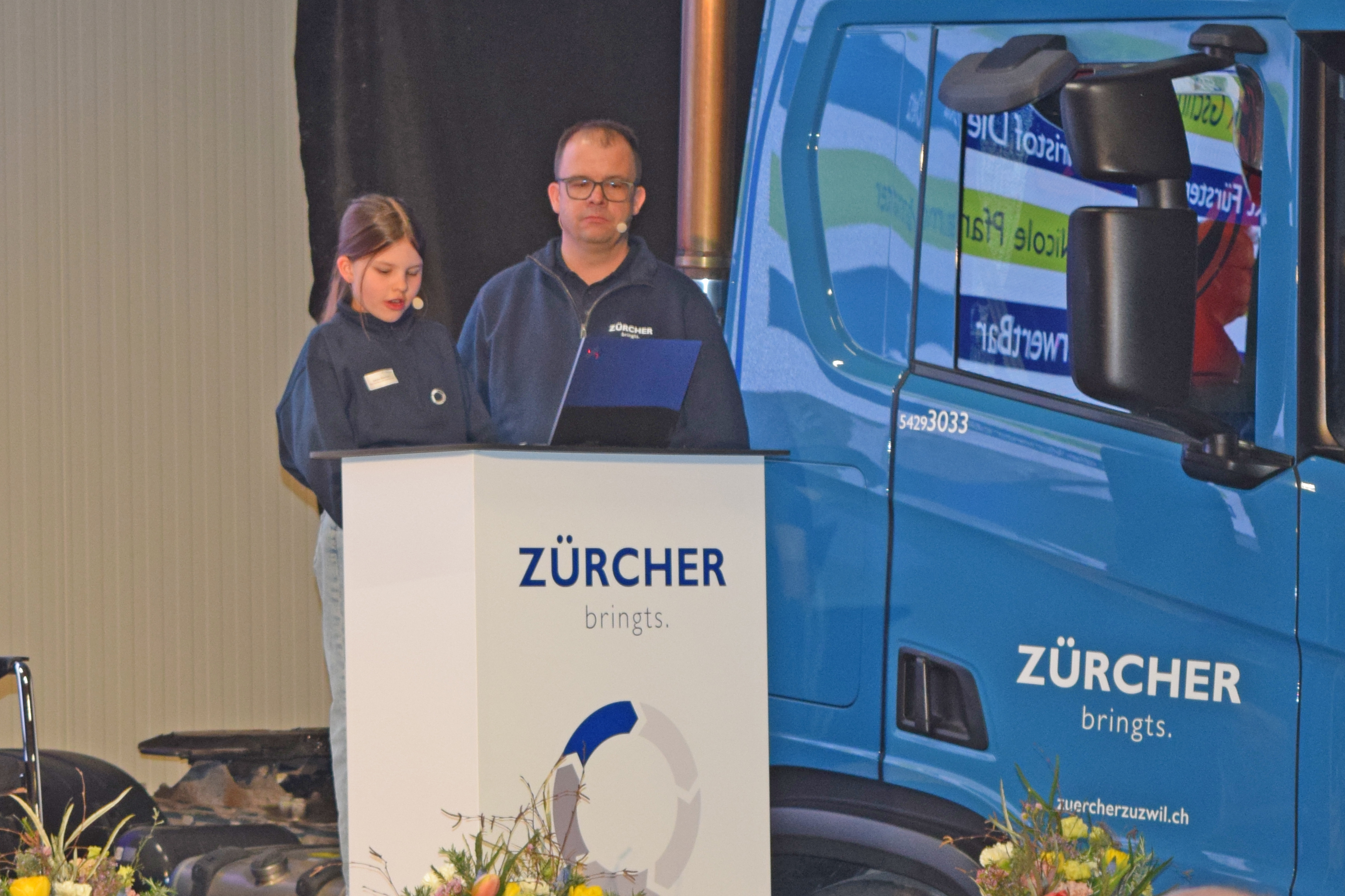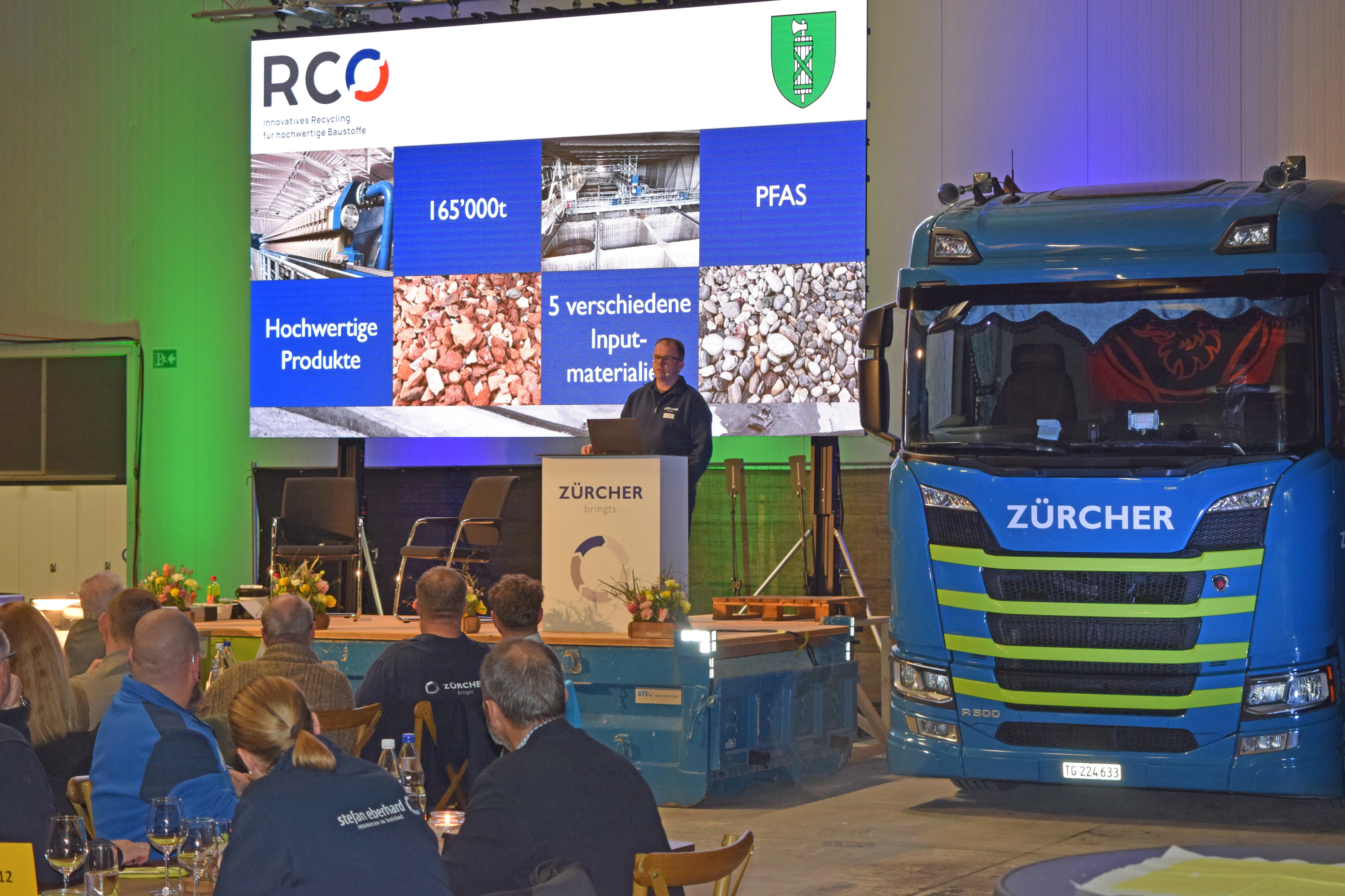 Die offizielle Eröffnung übernahm Larina Eberhard, Tochter von Stefan Eberhard, die souverän und charmant durch die Einleitung führte. Anschliessend folgten spannende Einblicke und aktuelle News rund um die Zürcher Kies und Transport AG sowie die Unternehmen der sehag Gruppe.